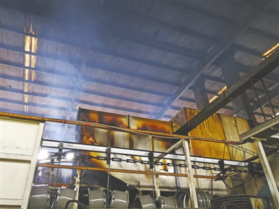 整改前的公司車間有煙冒出