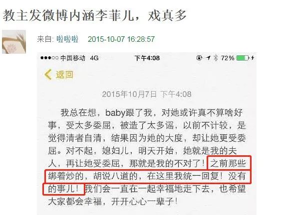 把李菲兒的名字,冠冕堂皇地放出來,字裡行間,盡是冤枉。